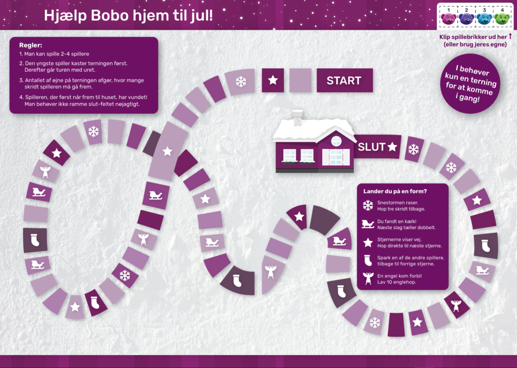 Illustration til chokoladejulekalender + “Juleleg” minibog med brætspil, kravlenisser og opgaver.