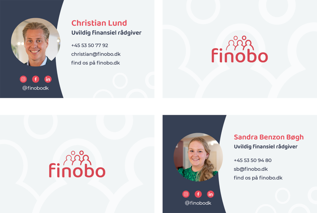 Visitkort til ledelse samt vores finansielle rådgivere